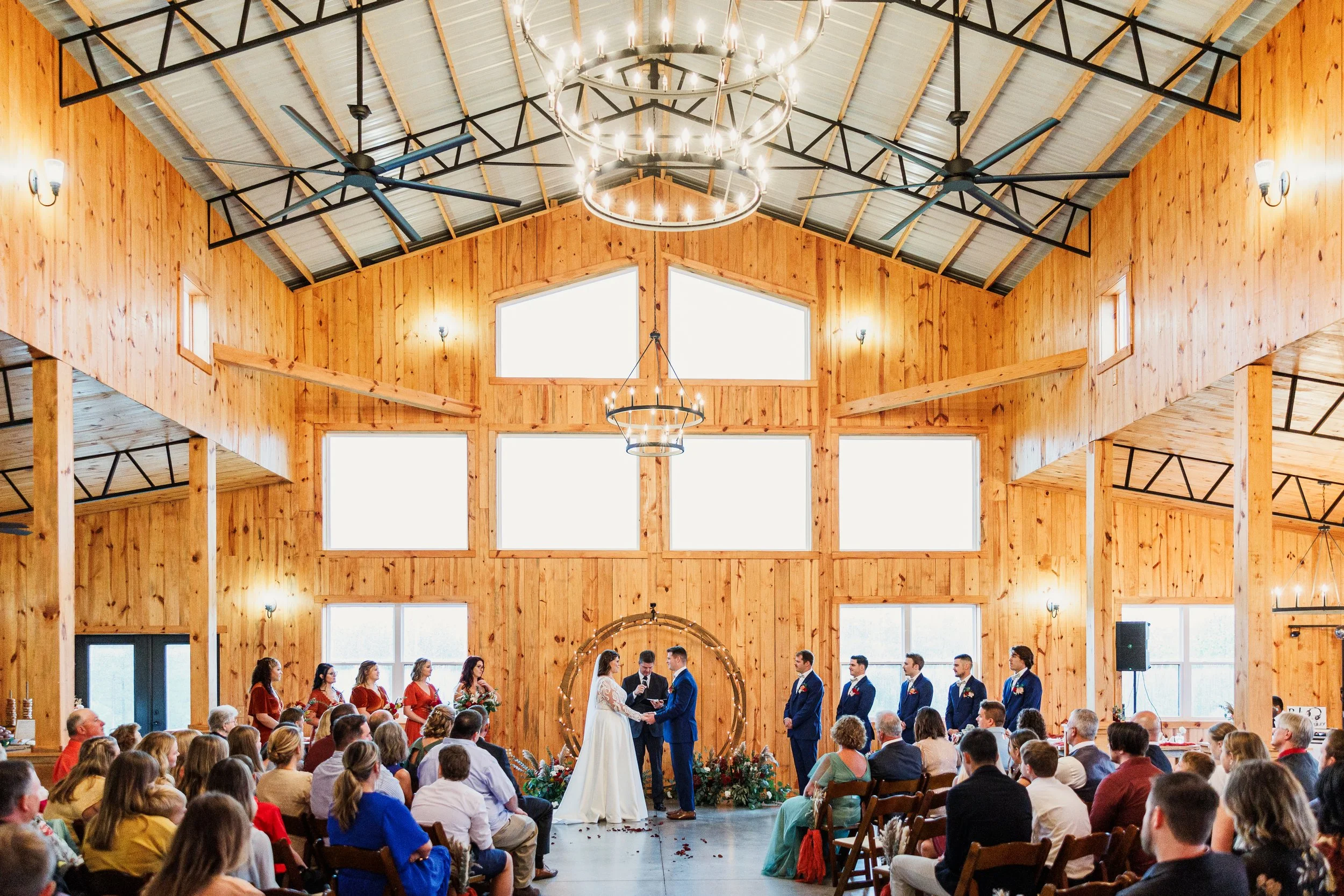 Seneca Lake Venue, a venue located in the valley of the stunning Virginia mountains is where the beauty combined. The stunning combination of rustic and elegant displayed within the barn venue brought all of the beauty together. The stunning beans, gorgeous lights and statement bar area exuded charm and warmth. It provided nothing short of the perfect canvas for the couple to express their love story.